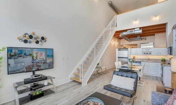 Luxurious 2 Bedroom, 1.5 Bath Loft Style Condo in the heart of Santana Row! The Loft is 1,100 sq. ft. and is equipped with 1 King Bed in the Master and 1 Queen Bed in the Downstairs Bedroom. High-Speed Internet, Indoor Laundry with Washer & Dryer.