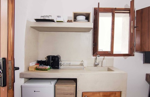 Rest assured, this accommodation offers all the necessary amenities for a comfortable vacation, providing a secluded yet secure environment. Its location makes it an ideal retreat for those seeking relaxation, exploration of the captivating landscapes of the Santorini, or a perfect blend of both.