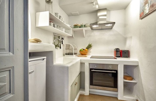 This Cycladic cave house, was renovated in 2023. Located at the heart of old emporio in quiet surroundings. The warm atmosphere welcomes you .The villa is equipped with modern kitchen , A/C , smart TV , free WI-FI , hair dryer , iron and iron rack, comfort table for the digital nomad etc.