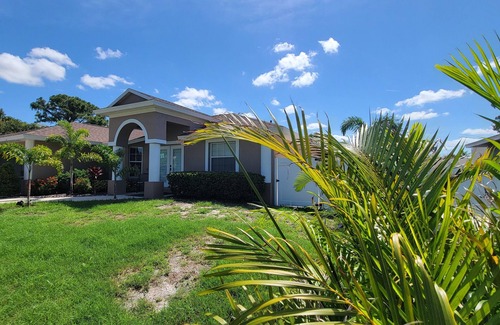 You deserve a vacation, so forget your worries while staying in this spacious and serene space. Make sure to enjoy all the magic that Sarasota offers. While we require a minimum of four nights stay, you will for sure want to stay for longer in this peaceful resort. This is a charming cozy 3 bedroom, 2 bathroom, home. The kitchen is fully stocked for all cooking needs. The kitchen is accompanied by a spacious comfy living room and a beautiful backyard. Our fenced-in backyard is packed with lush flowers and palm trees to bring out that getaway vibe. The backyard also includes a nice patio area with a BBQ grill, and a nice outdoor dining area. If you chose to explore Sarasota, the area is covered in amazing restaurants as well as performing art venues. This home is the perfect getaway for friends and families.