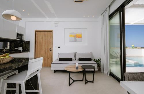 Featuring mountain views, Sardines Luxury Suites in Hersonissos features accommodations and an indoor pool. This property offers access to a terrace, free private parking, and free Wifi. Every room is fitted with a balcony with sea views. At the apartment complex, every unit is fitted with air conditioning, a seating area, a flat-screen TV with streaming services, a kitchen, a dining area, a safety deposit box, and a private bathroom with a walk-in shower, bathrobes, and slippers. A dishwasher, an oven, and microwave are also available, as well as a coffee machine and a kettle. Additional in-room amenities include wine or champagne and fruit. Guests can spend time in the water park or enjoy the infinity pool at the apartment. Analipsi Beach is 1.3 miles from Sardines Luxury Suites, while Cretaquarium Thalassocosmos is 4.9 miles away. Heraklion International Airport is 11 miles from the property, and the property offers a paid airport shuttle service.