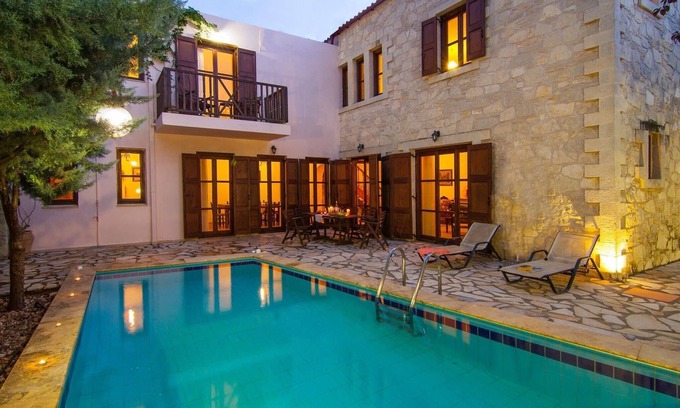 Sarris Villa is situated in a picturesque Cretan village of Agios Mamas. Surrounded by stone walls and beautiful countryside the Villa is approximately 16 km away from the fisherman village of Panormo with a sandy beach, 32 km far from vibrant Rethymno city and 63 km away from Heraklion – the capital of the island. The location of the Villa is perfect as a base for various excursions throughout the island of Crete.