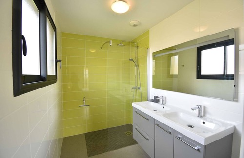 Villa adjoining the garage includes, on the ground floor, a living room with sofas, television, dining area. An open kitchen fitted and equipped with a fridge-freezer, oven, ceramic hob, microwave, toaster, kettle, coffee maker and a dishwasher.