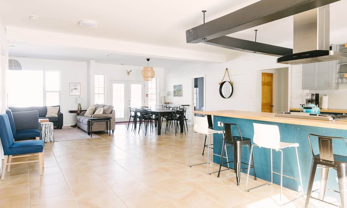 Clean and stylish 4,000 sq ft house with 2 kitchens + 3.5 bathrooms + 3 comfy seating areas + breakfast nook + 2 dining areas + 2 indoor fireplaces + covered porch + enclosed sunroom.