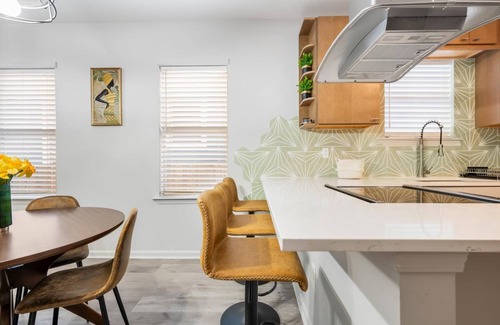 Just 8 minutes from downtown, this inviting retreat features stylish vintage touches, and ultra-comfy furnishings—perfect for movie nights