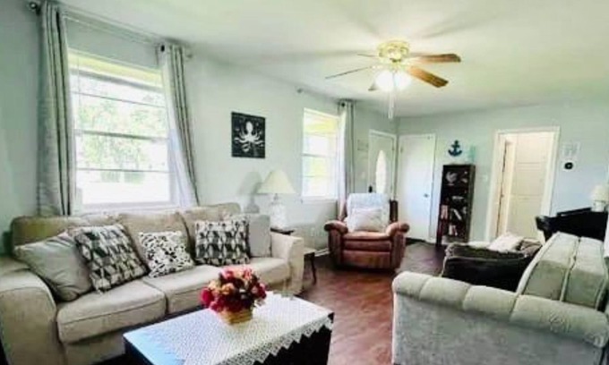 Discover this enchanting 2-bedroom gem in Port Wentworth, Savannah area. This cozy house features a king bed, Queen bed, Full bed and a sofa-bed for 5 sleeps with a full kitchen & strong Wi-Fi perfect for a small group of guests. With a washing machine, Central Heat and Central AC, your stay will be enjoyable and stress-free in a quiet Mom & Pop house. The 1.5 bathrooms provide convenience for all. A wired internet can be arranged for business travelers if requested. Your family will be close to everything when you stay in this centrally-located place. Closer to Downtown, Riverside, Pooler, the Port, SAV/Hilton Head Airport and Tybee Island Beach. Also near to Georgia Tech Savannah, Gulfstream, and I-95. You're sure to make fantastic memories with a stay at our place.