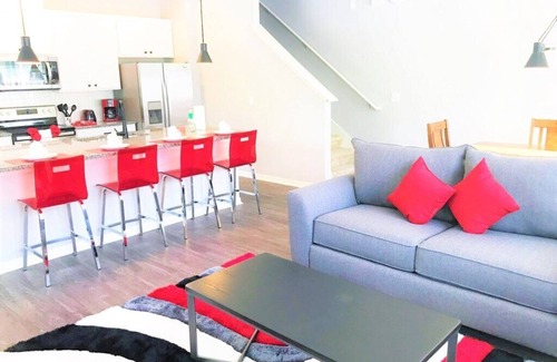 This beautifully maintained 4-bedroom, 3-bathroom townhome spans 1,649 sq. ft. over two floors and accommodates up to 11 guests. Located in the peaceful, gated Compass Bay Community, you're just 10 minutes from Disney and 20 minutes from Universal Studios. Ideal for large families or groups seeking comfort, space, and prime location.