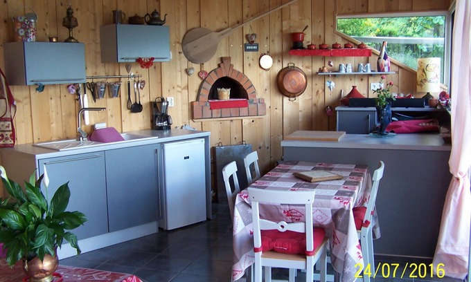 You will find in equipment; Dishwasher, microwave, oven, refrigerator, washing machine, freezer, plenty of storage space, walk-in shower, wc, television, wifi, fondue set, raclette grill, secure swimming pool with terrace overlooking the gite