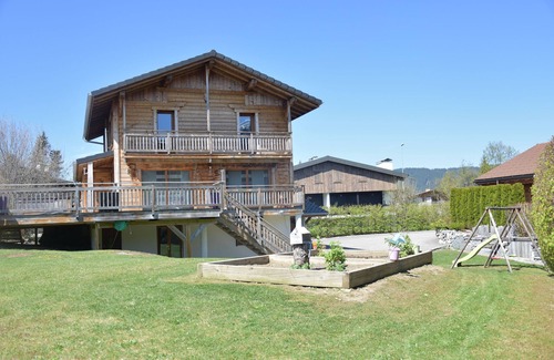 Charming chalet completely renovated of 170m2 in a very quiet area 5 minutes walk from the village center. Large 60 m2 sunny terrace and 800 m2 garden. Nice view of the Aravis range.