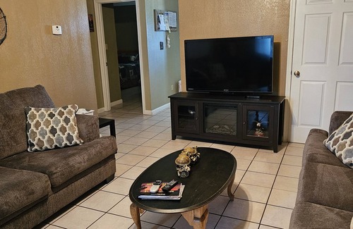 All bedrooms have 2 full-size beds with large closets. Living room, full kitchens, and patios with grills and fire pits are located on the property. Washer/Dryers are available in the unit for longer stay visitors. Roku tv is available in this unit. You can log into your favorite streaming services. We are close to public boat ramps and parks. This rental does not have lake access. Boat parking area is available. Many new area attractions are in the area. We do rent this unit as a combo if another rental is needed. Call for details. 731-592-2688. See ya soon