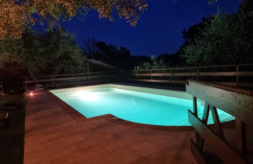 Set among the olive trees, the swimming pool is a true rarity of its kind, and offers enchanting spaces for the guest including a mini bar which you can use.