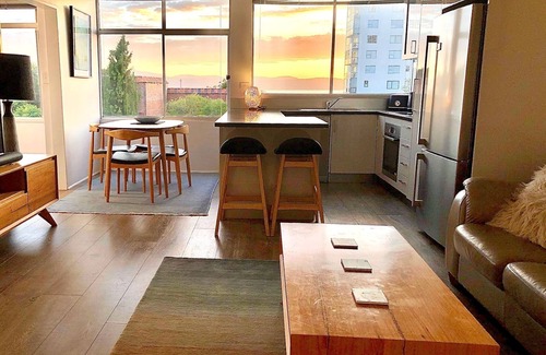 THE SPACE - One bedroom apartment located on the third floor up two flights of stairs (no lift) with open plan living, dining, kitchen and study/sunroom. Modern furnishings with all the comforts of home. Unlimited broadband internet access.