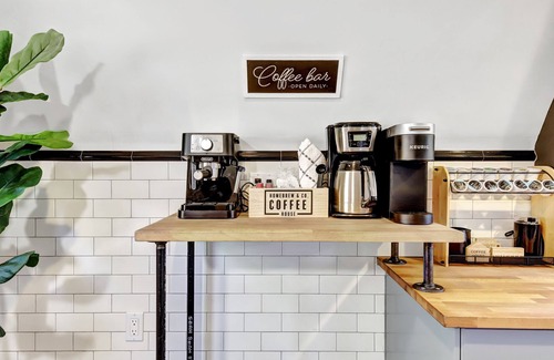The kitchen is well appointed and includes a bonus coffee bar with an Espresso machine, coffee pot, and Keurig.