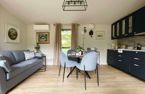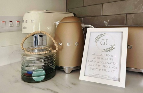 Nestled on 7 acres of green & scenic land, The Game Keepers Cabin, is a newly built, pet friendly & exquisitely decorated 1BD chalet, perfect for a romantic retreat or peaceful getaway. Explore the serene grounds, woodland trails, and a private waterfall. Immerse yourself in nature’s beauty before unwinding in your cosy space with a large comfy bed, ensuite, fully equipped kitchen, and stylish living area. Every detail is crafted with the finest materials for a luxurious and peaceful getaway.