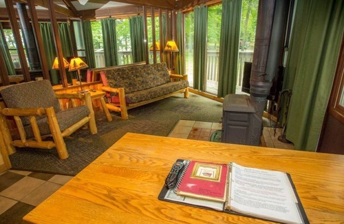 Cabin 101 brings you close to Big Turtle Lake with its unique octagon design. This two-bedroom, two-bath retreat hosts up to 4 guests comfortably, with room for 6.