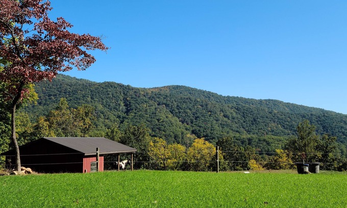 Take it easy at this unique and tranquil getaway with beautiful mountain views. Enjoy watching the horses framed by scenic mountains from this private mountain home located only 13 miles from the Shenandoah National Park Swift Run Gap entrance. The front porch with rocking chairs, the deck with a barbecue, and the large yard with a stone firepit makes the outdoor enjoyment even better. Scheduled horse brushing and feeding is available for a fee. The road up to the house is a gravel winding mountain road. If there is snow you will need 4-wheel drive. We have fast fiber optic internet with a smart tv.