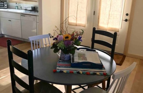 & oven, refrigerator, dishwasher, microwave, toaster oven, 3 types of coffee makers, plus a starter supply of coffee pods, tea and Swiss Miss), dining area, a private outdoor deck with seating, a comfortable living room with Smart 40" Roku TV, puzzles, wifi, a Serta Perfect Sleeper queen sized bed, and laundry area with stackable washer dryer and laundry essentials. A full bath with tub and shower (stocked with towels, soaps, shampoo, and essentials) connects the open loft to a private bedroom with 2 twin beds, great for kids but sturdy enough for adults. The Smart TV has many apps for guests to sign in under their subscriptions to Netflix, Hulu, and more.