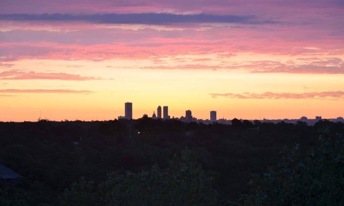 Relax with the whole family at this peaceful large home with a pool. Beautiful greenbelt overlooking downtown Tulsa. Commuting is easy, 15 minuntes from downtown Tulsa and 15 minuntes from Keystone Lake.