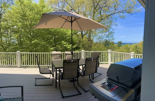 Come and relax at this scenic and tranquil getaway. Experience breathtaking sunsets and star gaze over Lake Michigan at this home that sits at the top of a sand dune. Enjoy grilling on the back deck with family and friends, relaxing in the Hot Tub, or challenge to a game of Pool, Chess, or Foosball in the game room!