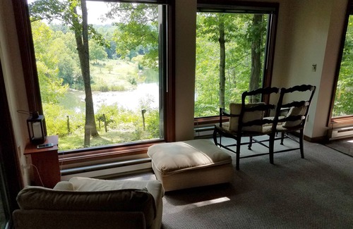 This place is a great hub for activities related to Ohio University, the micro breweries and restaurants of Athens, hiking trails, Strouds Run State Park, lakes, boat rentals, picnic areas, and the O.U. golf course. A 50 minute drive will take you into the heart of the Hocking Hills. Although the lake view is only a borrowed one, it does offer an amazing vista and wildlife abounds.