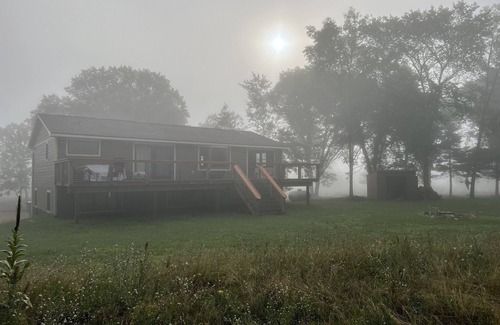 The property features a range of amenities tailored to ensure your comfort and enjoyment throughout your stay. Enjoy direct access to the river for swimming and paddling, with provided canoes and kayaks to enhance your waterfront experience. As part of your wedding celebration, take advantage of our grand bathroom facilities and charming outdoor spaces, including two campfire pits for evening celebrations under the stars. This unique accommodation also boasts a small apple orchard and a developing Burr Oak savanna that adds charm and character to your wedding venue.
