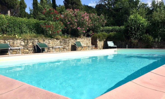 This detached holiday home has been recently restored, preserving the wooden beamed ceilings and terracotta floors. The house offers a wonderful home base during your discovery of Tuscany! Get to know the neat and atmospheric interior, and enjoy all the comforts in and around the house. Take a refreshing dip in the shared swimming pool (shared with other guests, 10 x 5 m open from May 1st to October 1st), or start a new book on your private terrace (beautiful view!). There is also a barbecue! Very handy if you want to organize a cozy culinary evening under the stars. A nice way to end the day!