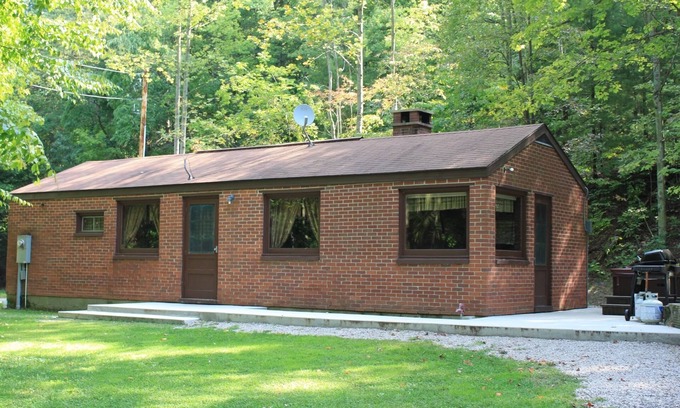 Scenic View Retreat is a two bedroom brick cabin located at the edge of the Hocking Hills, with a beautiful fishing pond just outside your door.