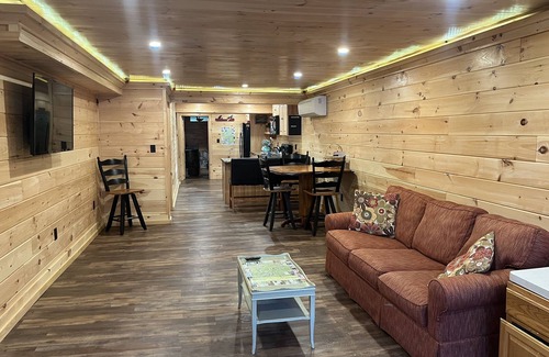 Beautiful recently renovated 2 bedroom/1 bath condo, accentuated with natural tongue and groove pine. Rental includes large living room and TV, bar area, fireplace,plenty of off-street parking, central A/C and heat, and access to lake frontage.