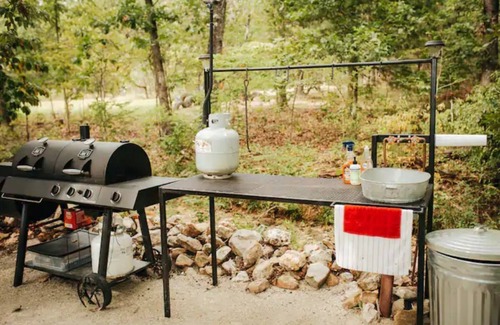 Nestled in the Ozark Hills, we offer guests a secluded place to unwind and enjoy nature. The cabin has running hot water but no electricity or flushing toilet. We have an outhouse and propane lighting. The cabin is accessible by a gravel trail. Four-wheel-drive or high profile two-wheel drive vehicles are needed to get to the cabin.