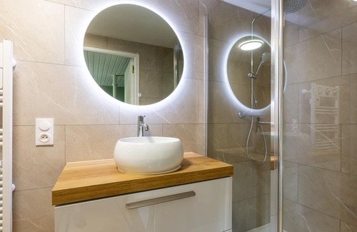- A bathroom with Italian shower, washbasin, anti-fog mirror, towel dryer, VMC system.