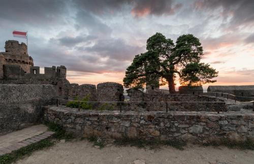 Providing barbecue facilities, Schloss Auerbach Große Ferienwohnung provides accommodations in Bensheim. This property offers access to a balcony, free private parking, and free Wifi. The accommodation features airport transfers, while a bicycle rental service is also available. Featuring a terrace and mountain views, the spacious apartment includes 3 bedrooms, a living room, satellite flat-screen TV, an equipped kitchen, and 1 bathroom with a shower. Guests can take in the ambience of the surroundings from an outdoor dining area or keep warm by the fireplace on colder days. Additional in-room amenities include wine or champagne. There is an on-site family-friendly restaurant and coffee shop. Guests at the apartment will be able to enjoy activities in and around Bensheim, like hiking and walking tours. Guests can also warm up near the outdoor fireplace after a day of cycling. Darmstadt Central Station is 16 miles from Schloss Auerbach Große Ferienwohnung, while Darmstadtium Congress Center is 16 miles from the property.