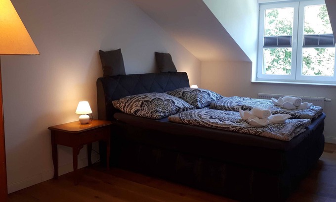 Close to cycling, hiking trails, and more, this pet-friendly apartment brings it all within reach. With convenient onsite parking, you'll be ready to make the 19-minute drive to Barhoft Beach or the 23-minute drive to Stralsund Beach.