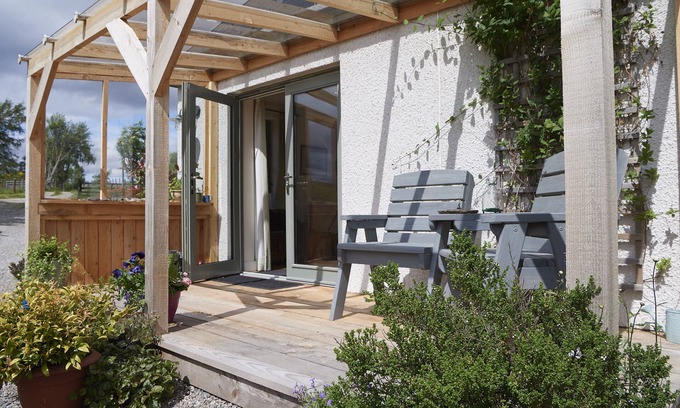 This self-contained apartment is in the countryside in a highland glen. The cottage is exclusively yours, with bedroom, bathroom, kitchen and living room and a porch with seating outside and views to the hill where deer and sheep graze.