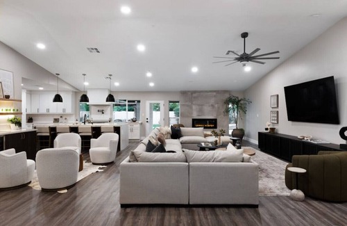 • Spacious open-concept living area with luxe furnishings