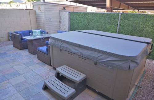 Enjoy your perfect getaway at our stylish Scottsdale oasis, just 5 minutes from the vibrant Arts, Shopping, and Entertainment districts! This 2-bedroom, 2.5-bath retreat features 5 cozy beds, a fully stocked kitchen, and delightful coffee bar. Unwind on the back patio by the fireplace and bar area or soak in our relaxing hot tub. Whether you seek a romantic escape or a fun-filled group adventure, we cater to all occasions. Inquire about our special experience packages for an unforgettable stay!