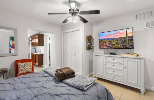 Scottsdale Oasis with Pool is located in Phoenix, just 18 miles from Copper Square and 18 miles from Phoenix Convention Center. This property offers access to a terrace, free private parking, and free Wifi. Musical Instrument Museum is 6 miles away and OdySea Aquarium is 7.9 miles from the vacation home. The vacation home features 1 bedroom, a fully equipped kitchen with an oven and a microwave, a washing machine, and 1 bathroom with a hair dryer. Towels and bed linen are offered in the vacation home. For added privacy, the accommodation features a private entrance. Guests can enjoy the outdoor swimming pool and garden at Scottsdale Oasis with Pool. Wrigley Mansion is 12 miles from the accommodation, while Castles and Coasters is 13 miles from the property. Scottsdale Airport is 1.2 miles away.
