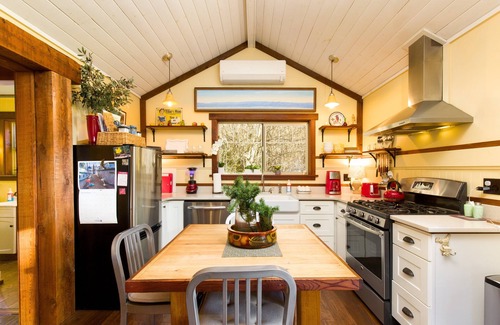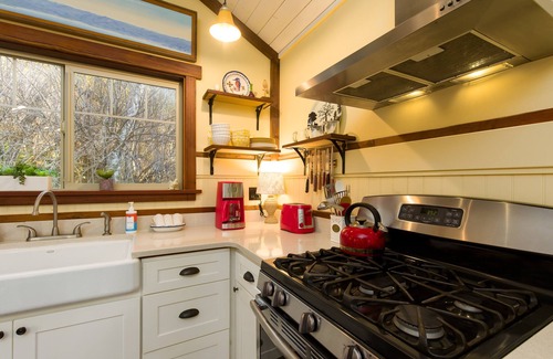 In the mornings enjoy a warm cup of coffee or tea as you walk out the door onto the sundeck overlooking the expansive private meadow before you finish breakfast and head off to explore for the day. And equally enjoyable when you return for a picturesque sunset dinner . The cabin is set up for three guests with a comfortable queen bed in the primary bedroom and an ultra thick twin size bed in the second bedroom. The full kitchen is well stocked with the majority of the cooking supplies and utensils you'll need to make quick meals on the go for your daily picnics or put together a leisurely dinner on the gas stove and oven. The full bathroom with shower and tub is designed to be compact but comfortable and well equipped. The front loading washer and dryer are well taken care of and located in the bathroom. All the BBQ utensils you'll need to enjoy the Gas Weber Grill are also provided. Hot and Cold sink near the BBQ for your convenience.