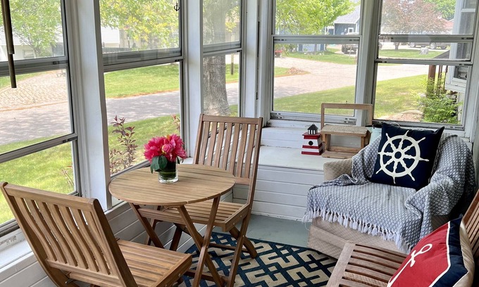 You will love our clean 4 bedroom/2 bath cottage as much as we do! The home is located in a quiet sub right in downtown Port Austin. Fully stocked with everything you need from pots and pans all the way to a beach supplies. Relax and have dinner on our deck or have cocktails on the front screened porch - both with lake views across the road (not directly on water). Walk to the Farmer's Market and restaurants in town, Paks Backyard, kayak rental, marina, Glen Royal Wedding Venue and the State Harbor in minutes. Bird Creek Park and Beach and splash pad are right in our neighborhood. Literally walk everywhere!