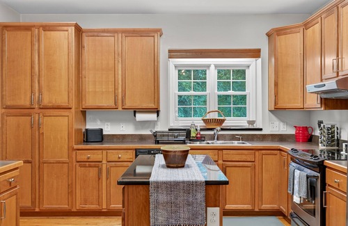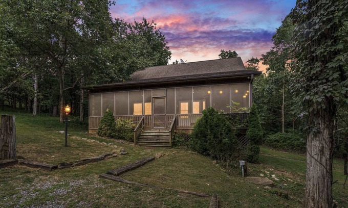 Bright, spacious dog-friendly, one-level cabin in Luray with screened porch, fire pit, and river access nearby. Enjoy a fully stocked kitchen, cozy living room with fireplace, Smart TV, dining for 7, and a large yard with hammock. Perfect for relaxing and entertaining!