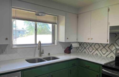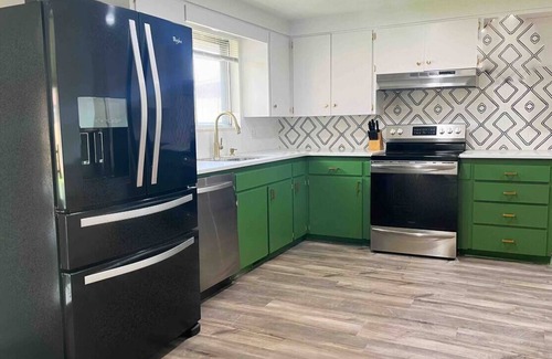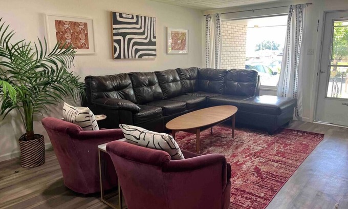 Come to relax at this stylish, centrally located space. This is the entire side of a duplex. It has its own front and back entrances, privacy fenced backyard, attached garage and driveway space. There are no shared spaces with the adjacent unit; although you could book both sides (Separate listing called "Seeing Double" includes both sides of the duplex).