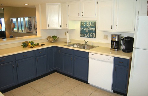 Inside the condo, calming shades of white, sand and soft blues are bejeweled with shimmery mirrors and beautiful artwork. Aqua, navy and cobalt blue accents mix things up just enough to keep them invitingly edgy in a clean, understated way. Modern, relaxed furnishings, cozy beds, premium linens and mattresses with 3" memory foam toppers, sofas that are "just right" for taking in a movie on the new 55’ HDTV, a kitchen stocked with everything a seasoned chef could dream of is what makes “Gulf Front Paradise” stand out from all the rest.