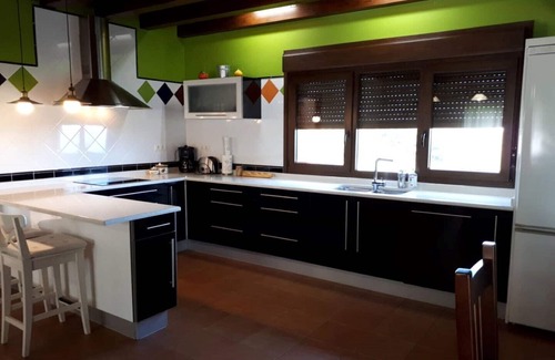 The house has 4 bedrooms, 2 bathrooms and a large dining kitchen with fireplace, from where you can access a large porch. It also has a lot of green area where you can enjoy outdoor games or sunbathing on the sun loungers.