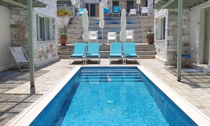 Sea and Sun Romantic Villas, a simple, elegant but at the same time luxurious and fully equipped complex of four houses with a common shared swimming pool in the center of Chorefto and right in front of the beach! Only for couples who are seeking to experience the luxury and real meaning of holidays in an accommodation that offers it all!
