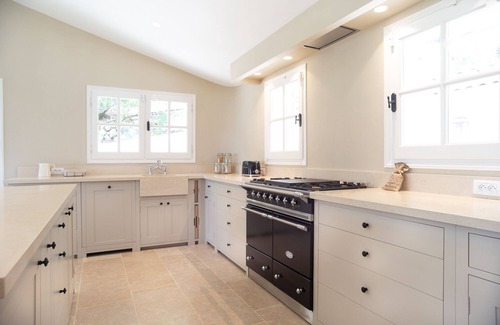 The modern Provençal villa has 4 bedrooms in the main villa and a separate studio, all of the bedrooms have ensuite bathrooms and direct access to a terrace. The kitchen is fully equipped.