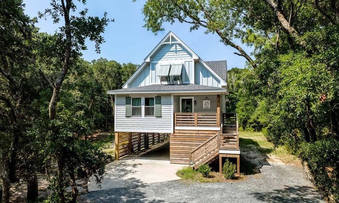 Welcome to Sea Glass Shack, a recently built and tastefully decorated rental designed for the ultimate beach vacation! Tucked among the trees in Southern Shores on a spacious lot, you'll enjoy one of the area's more secluded locations, while only being 1.5 miles from the popular shops and restaurants in Duck Village. Guests will also appreciate the privilege's of the Southern Shores Civic Association - 33 beach access points (the closest is less than .5 miles away and includes parking, restrooms/showers, and a gazebo) and access to the Soundview Park on North Dogwood Trail, where you can enjoy a children's playground, kayak launch, sandy beach, and more. There's even a sunset viewing platform just down the street!