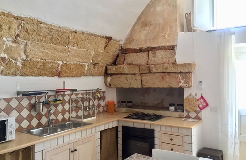 In the heart of Salento totally restored ancient house, with star and barrel vaults, bright, in the historic center of Matino (LE), well equipped kitchen complete with dishes, double bedroom with adjoining mezzanine with second single bed. Sofa bed, built-in kitchen equipped with gas, oven, microwave, refrigerator, toaster, complete with dishes, double bedroom with adjoining mezzanine with second single bed plus a sofa bed for one and a half in the kitchen, flat TV, washer dryer, iron ironing board, drying rack, hairdryer, umbrella etc.