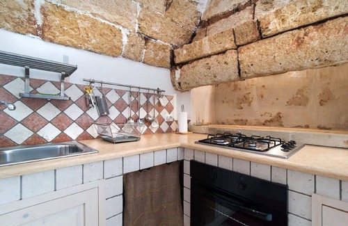 Perfect for families, it can accommodate up to 4 adults. Although equipped with air conditioning, it is a naturally cool house because the ancient walls are very thick