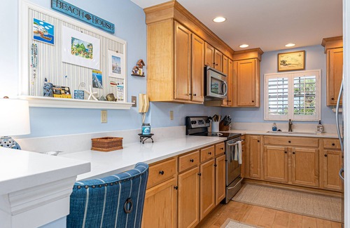 Coming in hungry from the beach? You will find a well equipped kitchen, with everything you need to create a picnic lunch while searching for shark teeth. Your full size washer and dryer are just off the kitchen for any wet beach towels.
