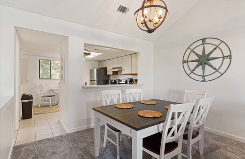 As you step inside this charming 2-bedroom, 2.5-bath vacation home, you'll immediately be greeted by an inviting atmosphere. The spacious interior features two cozy bedrooms, each adorned with a comfortable queen-sized bed. With two full bathrooms and an additional half-bath, you'll enjoy all the convenience and privacy you need for a rejuvenating stay.