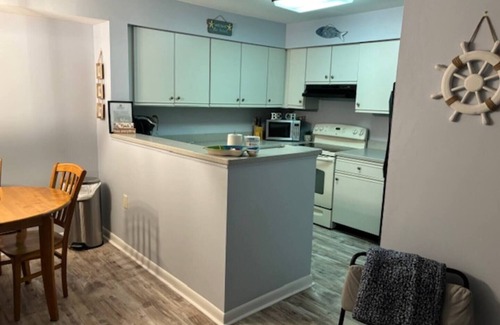 Sail away to this Seascape Sanctuary for your next vacation! Updated in 2024! New flooring, paint and furniture! This updated 1br, 1 bath condo offers a full kitchen, Cental AC, WiFi, large screen TV's in the main room and the bedroom. There is also an outside dining area on the spacious deck. Plenty of free parking in the sought after Herron Harbor community. The fantastic community pool is just steps away! For your added comfort the home comes with our RESORT package that includes bath towels and sheets for all the beds
